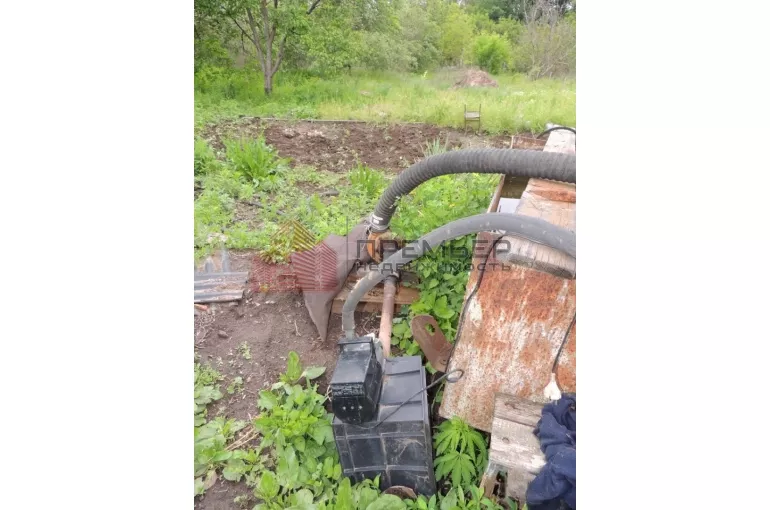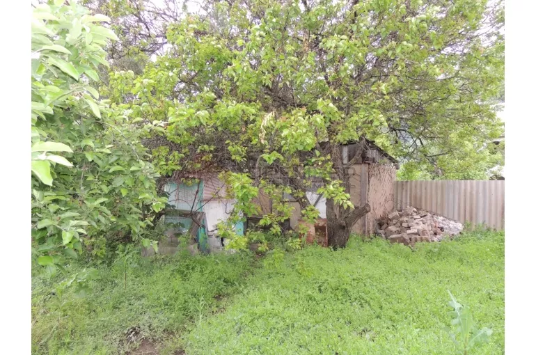 Участок прямоугольной формы площадью 13 соток. На участке кроме дома и летней кухни расположен гараж и баня. Много плодовых деревьев.