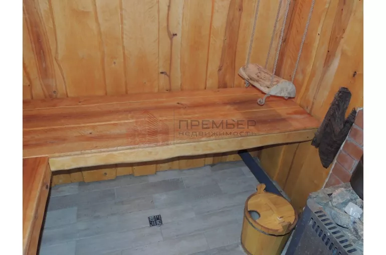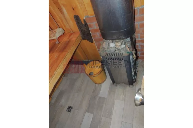 Баня из бревна. Состоит из парной, душевой и комнаты отдыха. Дополнительно установлен бойлер для горячей воды.