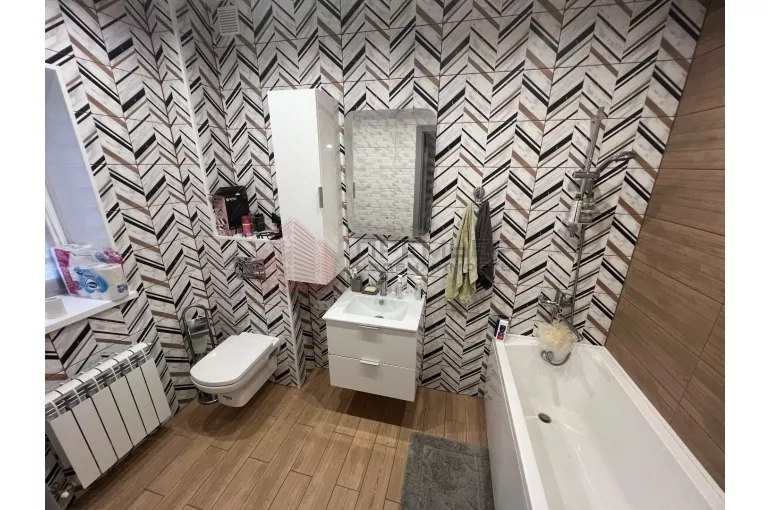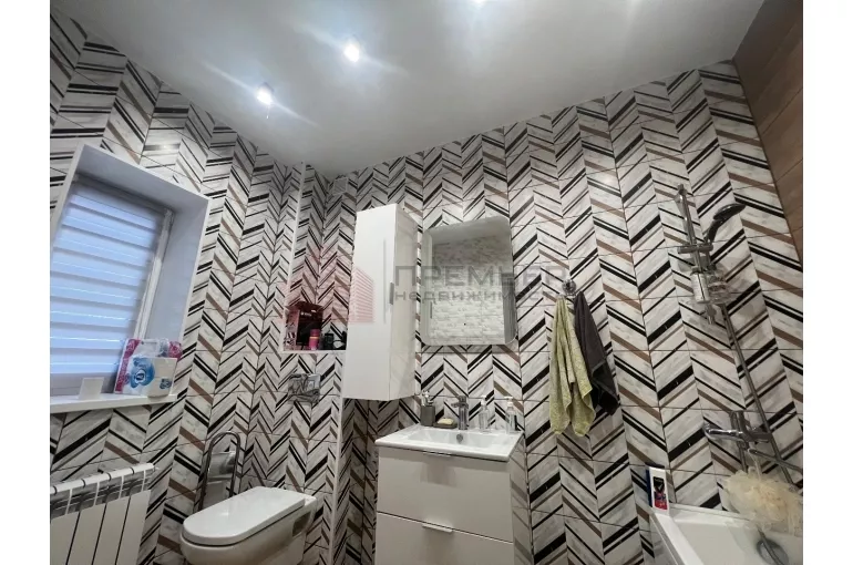 на 2 этаже расположены 3 комнаты, санузел. Во всем доме установлены пластиковые окна, напольное покрытие а 1 этаже плитка, качественный ламинат, натяжные потолки в спальной комнате. Все коммуникации современные, установлены счетчики на газ, воду, свет.