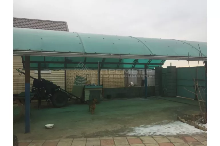 А также, большой открытый гараж на две машины с навесом из поликарбоната 50 м2.