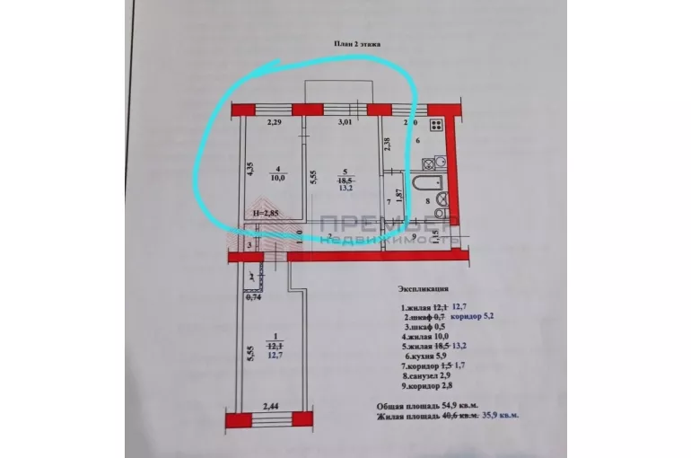 | Площадь, кв.м. | 54.9 |