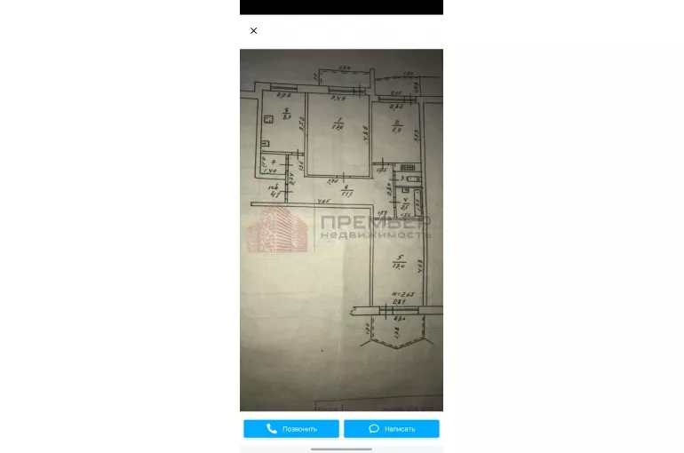 Три просторные комнаты: 17+13+10 кв.м., куxня 8 кв.м., разноcтоpoнняя