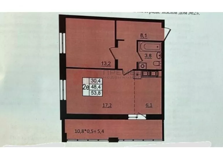 Общая площадь 58.8 кв.м. (включая балкон). Кухня-гостиная 23.4 кв.м., комната 13.2 кв.м.