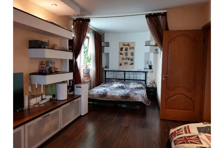 В квартире просторная застеклённая лоджия, встроенная гардеробная, комната разделена на две зоны - спальная и гостиная. Санузел совмещённый.