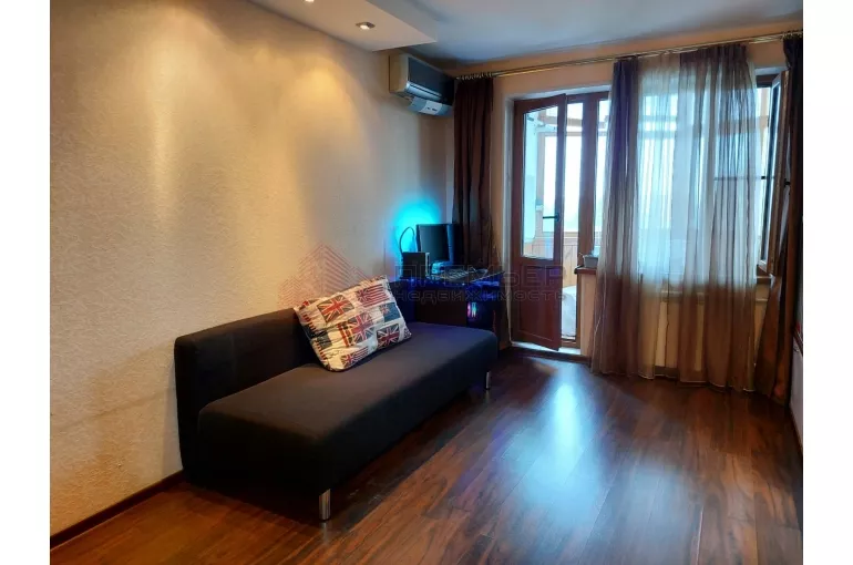 В квартире сделан очень хороший ремонт: Пластиковые окна, новые батареи, потолки натяжные в кухне, двухуровненые в комнате. напольное покрытие керамогранит и ламинат.
