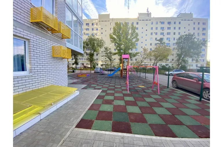 Закрытая территория. Во дворе оборудованы детские площадки, разбиты клумбы, растут кустарники и деревья, есть места для парковки.