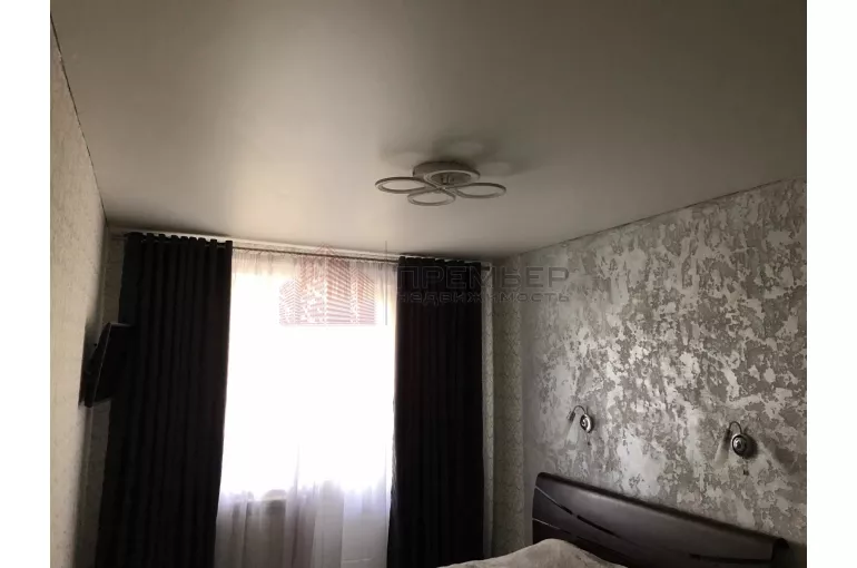 Подвесные дизайнерские потолки комбинированный из гипсокартона и натяжной в гостиной , и коридоре гипсокартон ,в ванной комбинированный ГКЛ и реечный потолок, натяжные потолки в спальне и кухне.