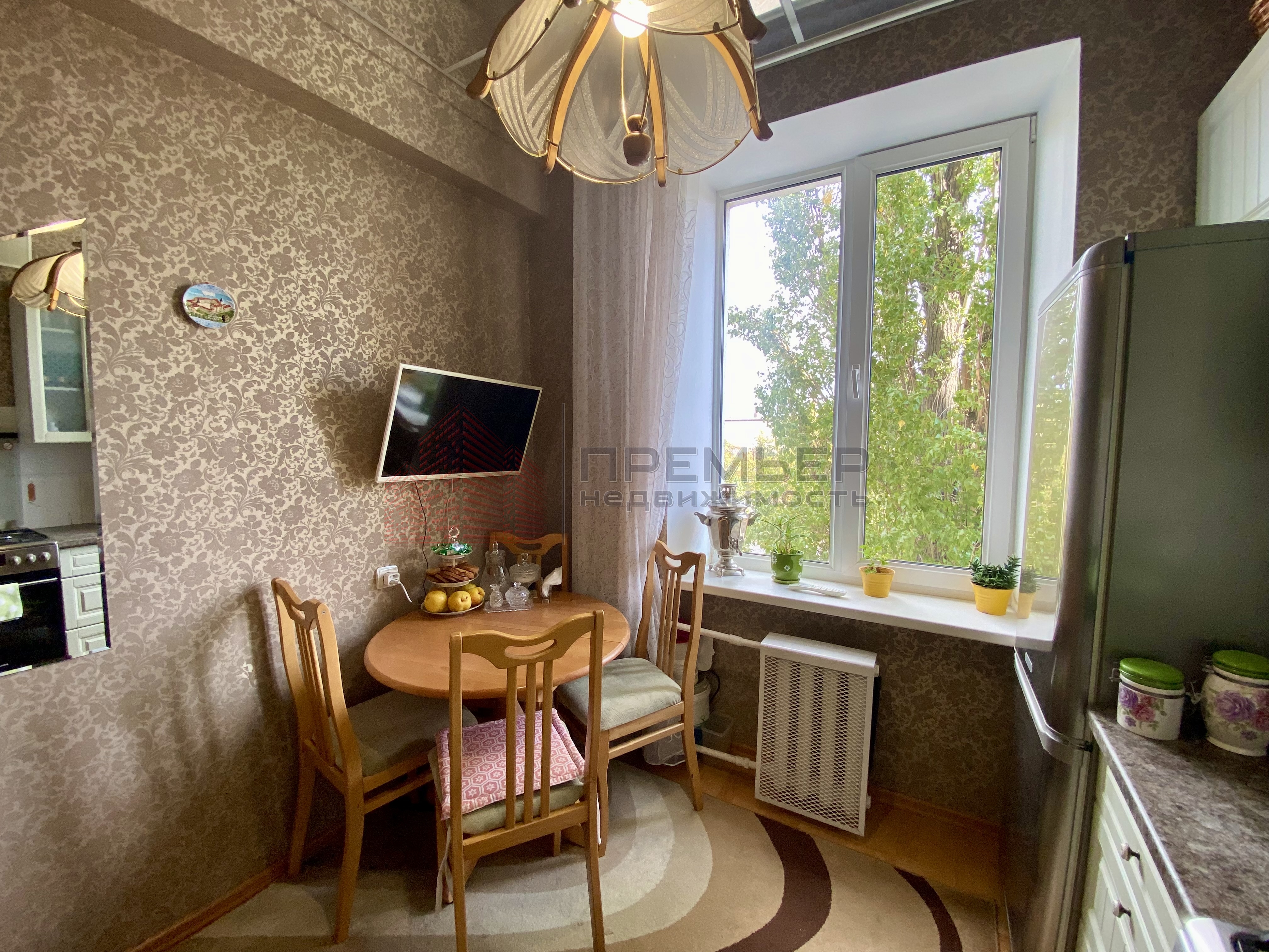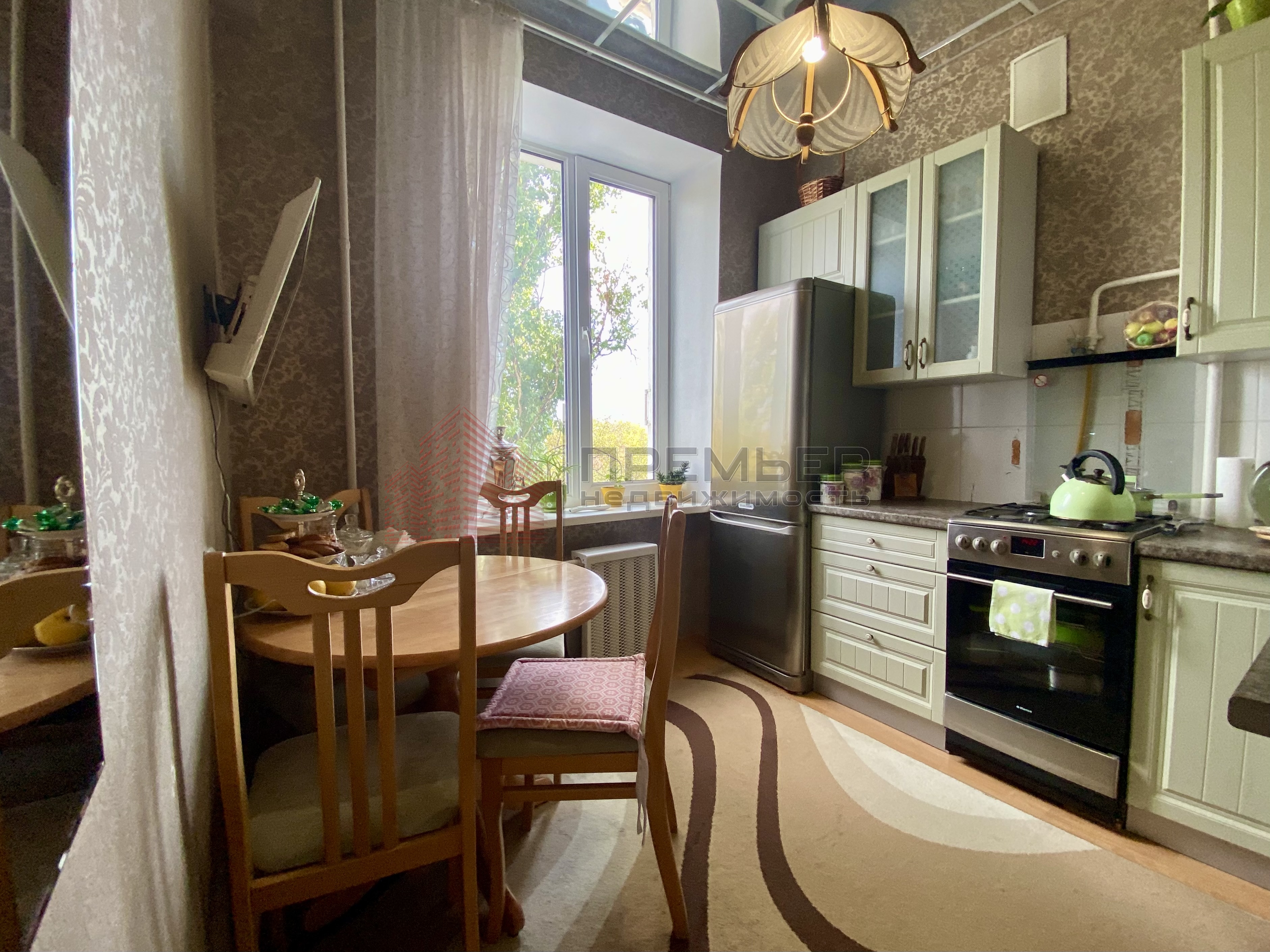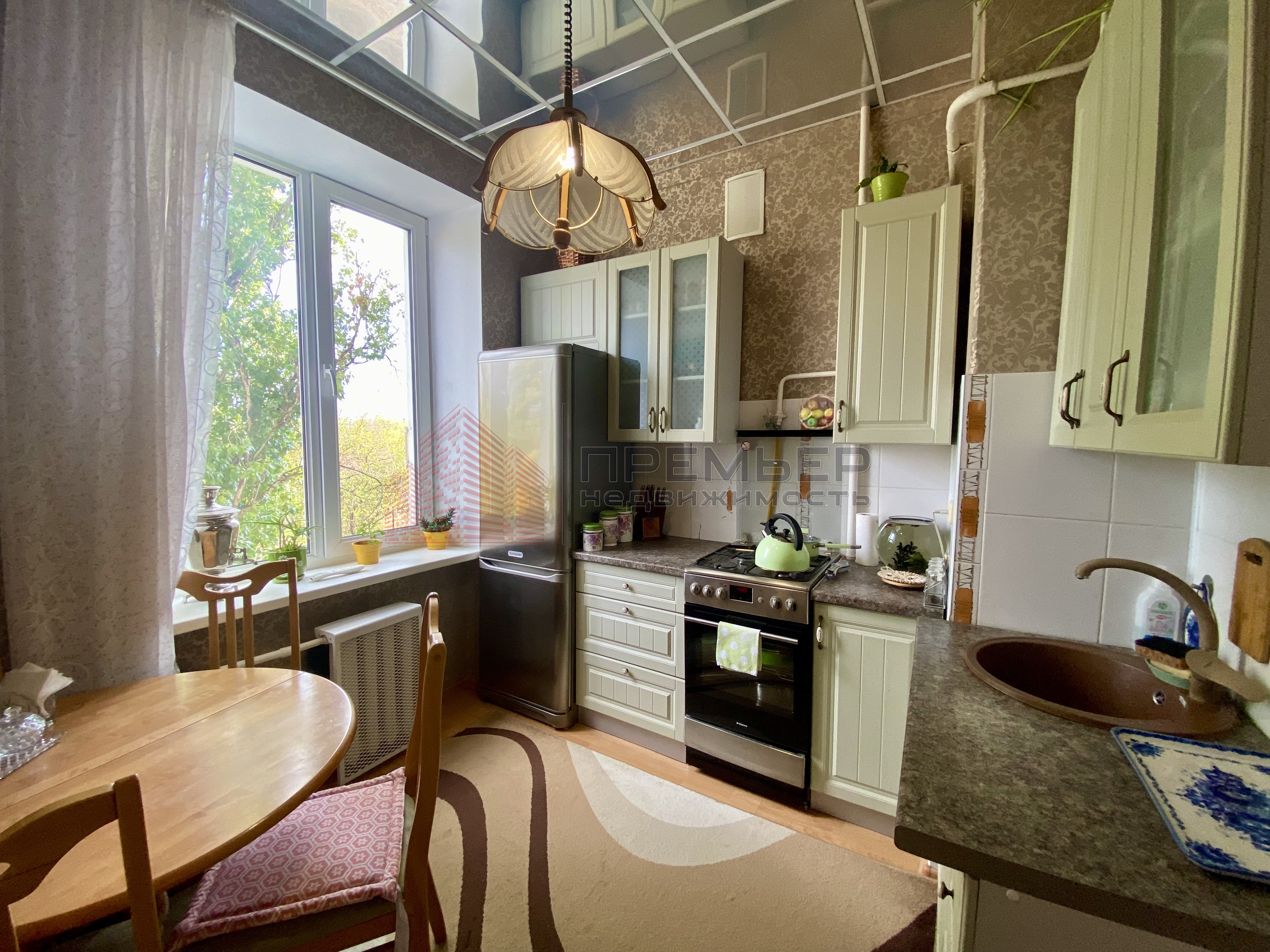 Уютная кухня с видом на сквер.