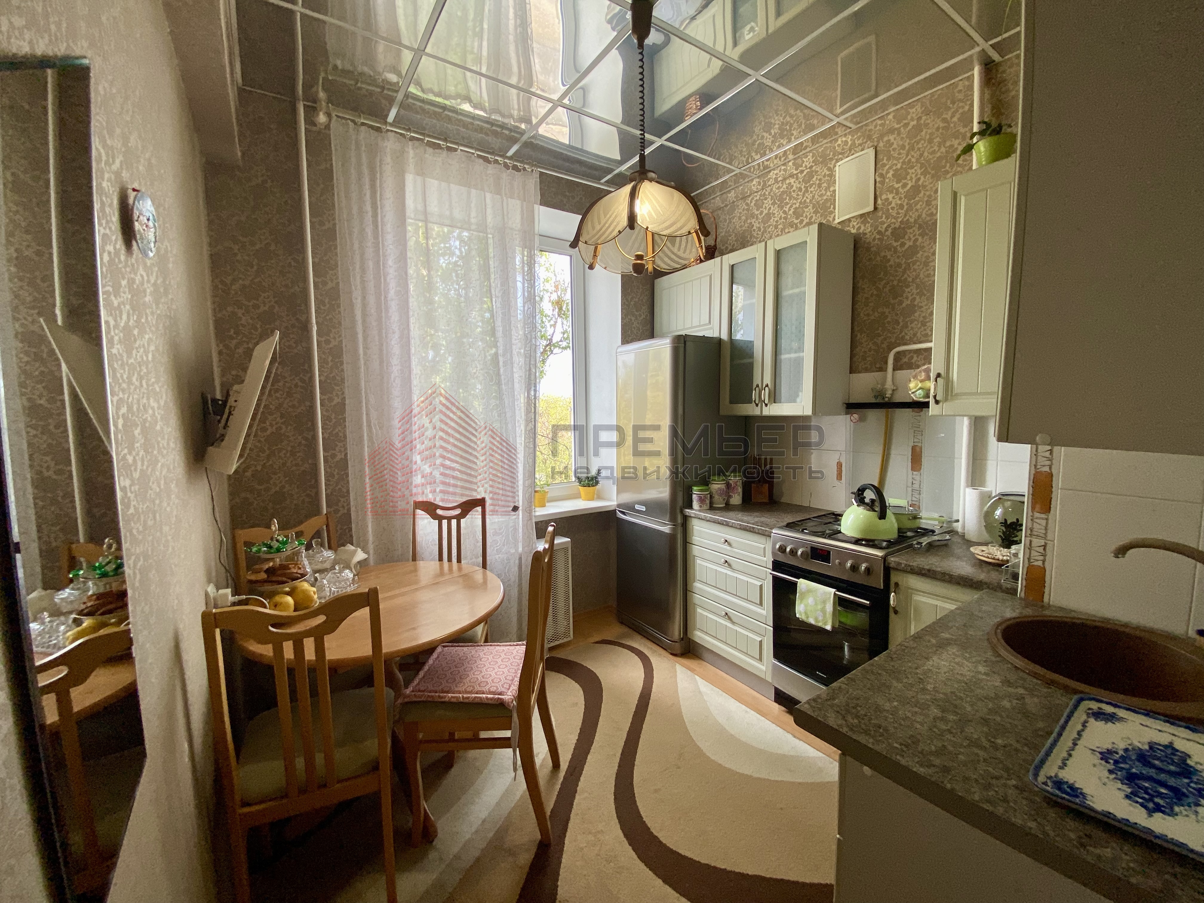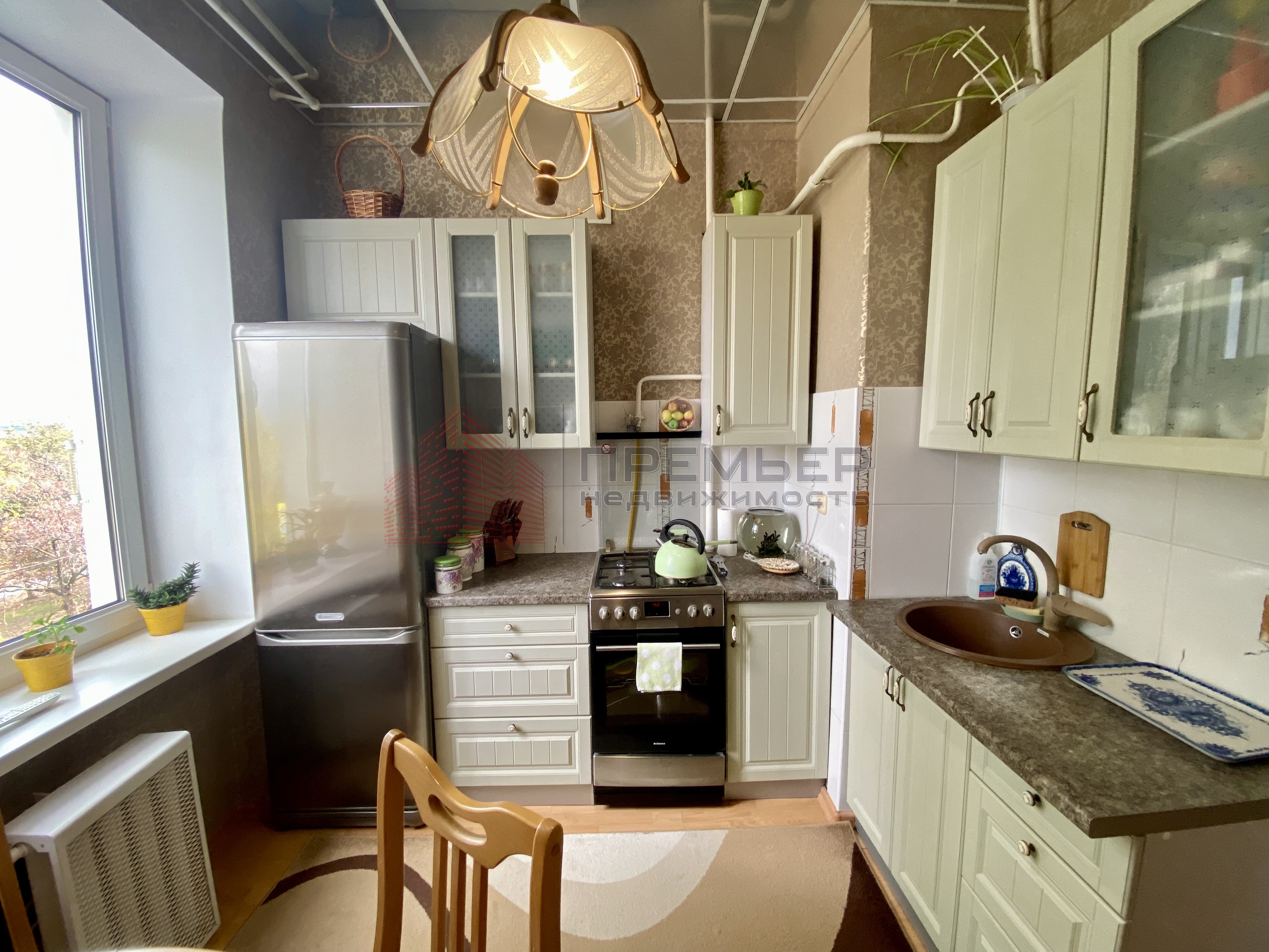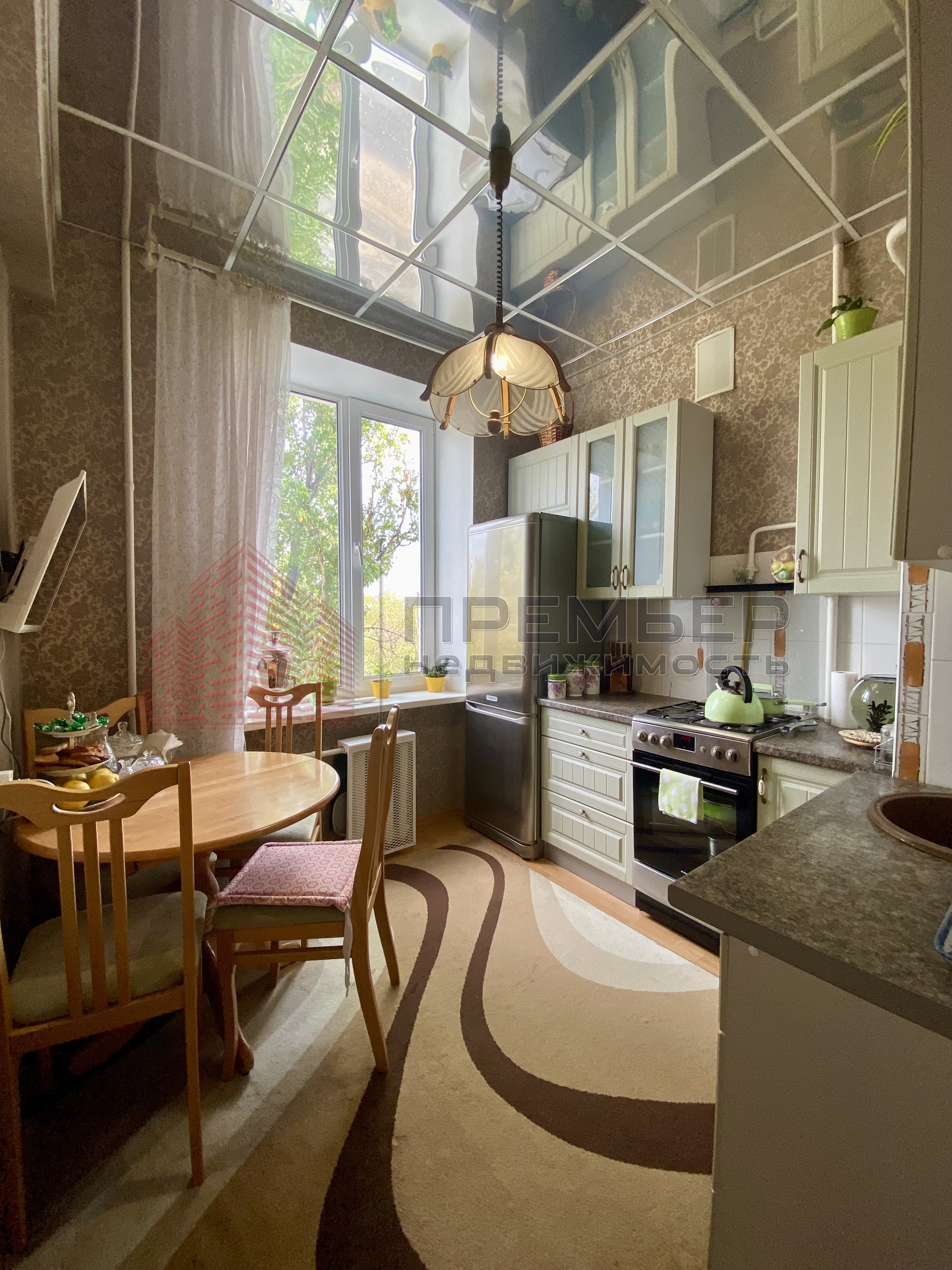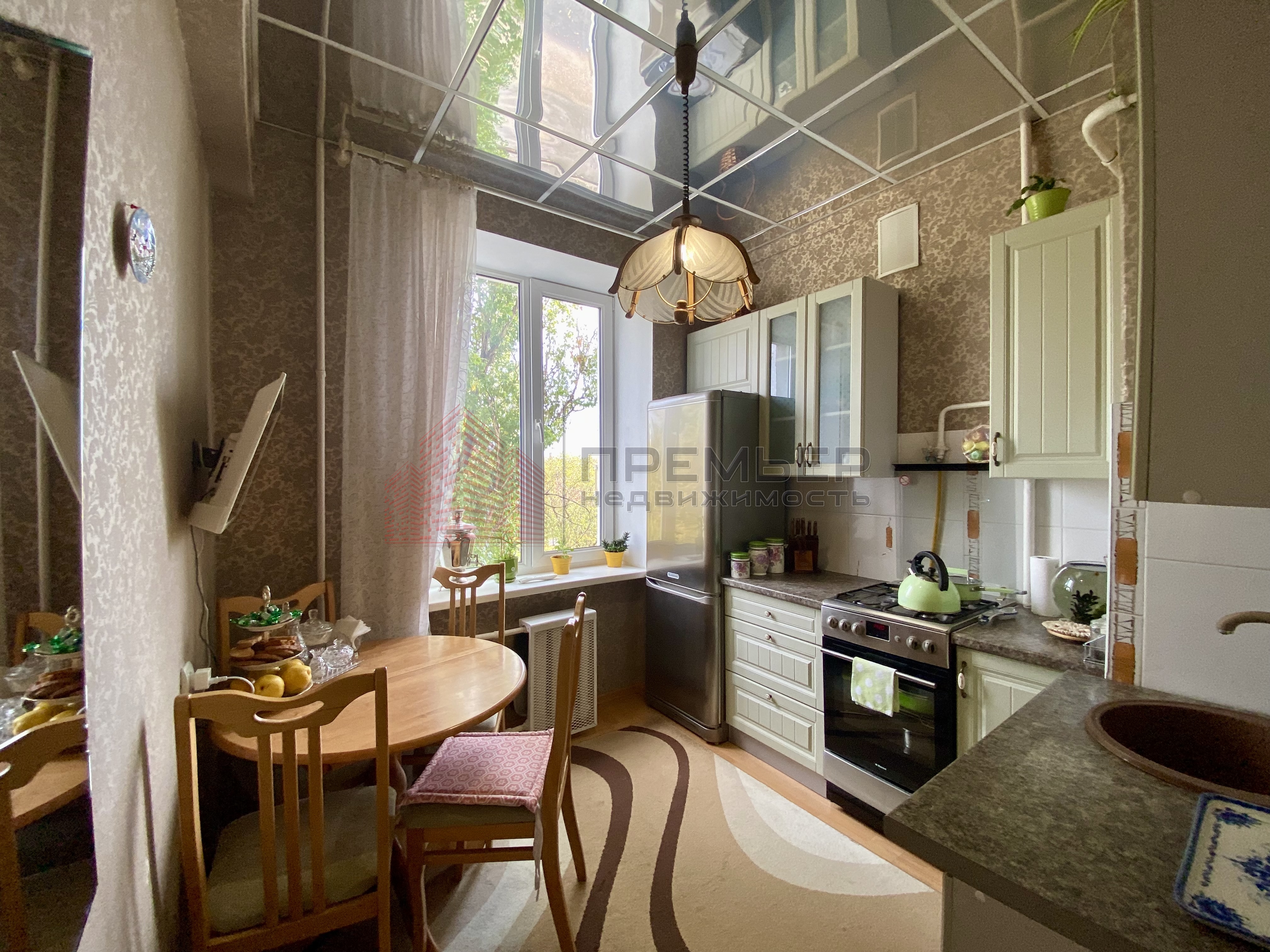 Уютная кухня с видом на сквер.