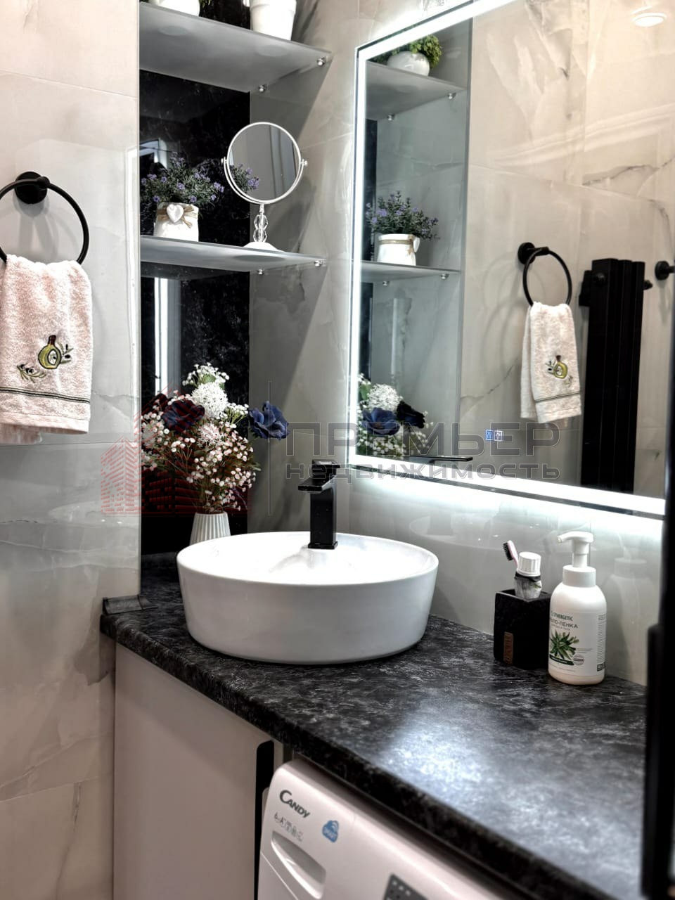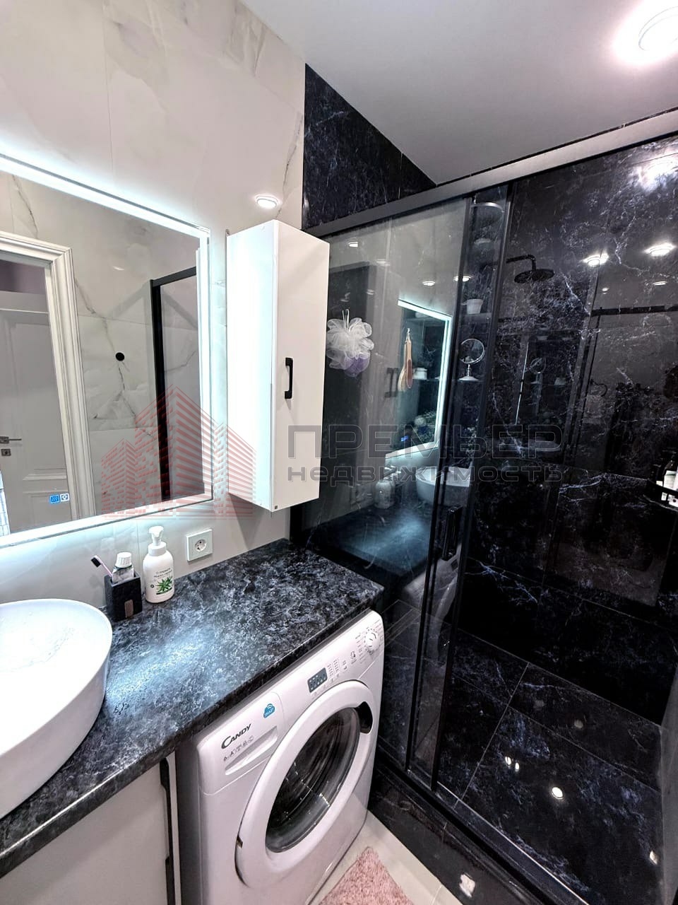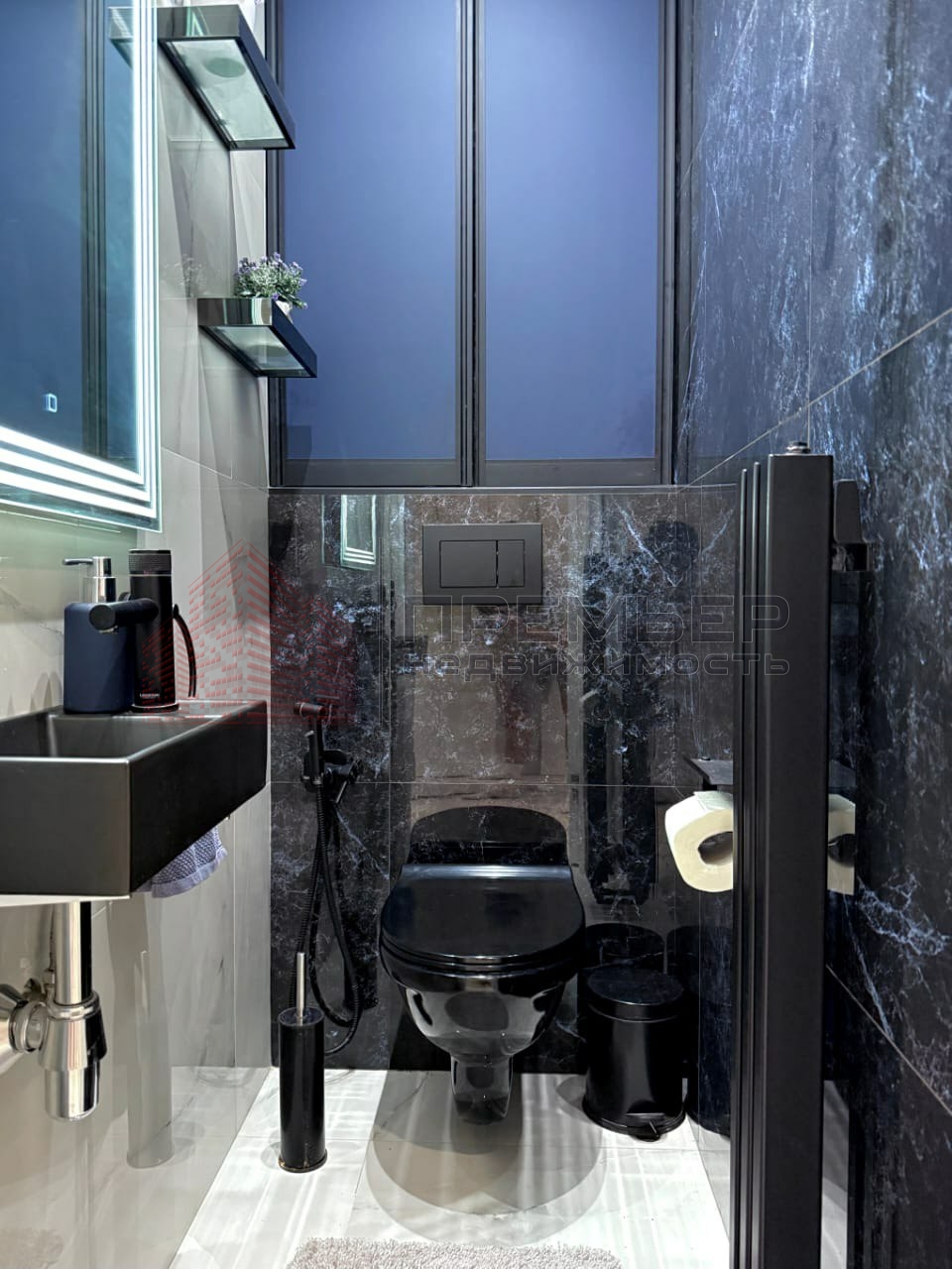 Дизайнерский ремонт с использованием премиальных материалов и импортной сантехники.