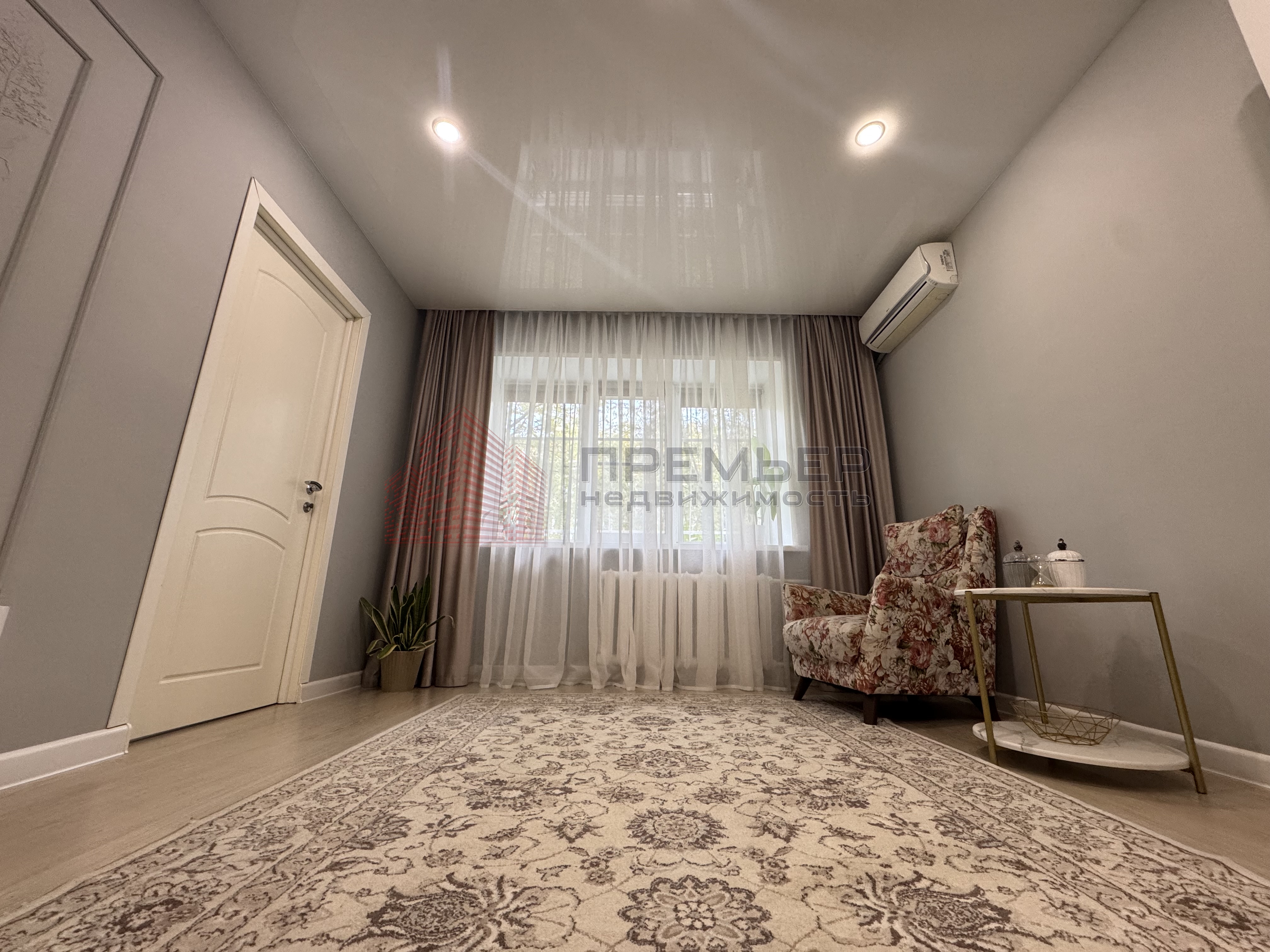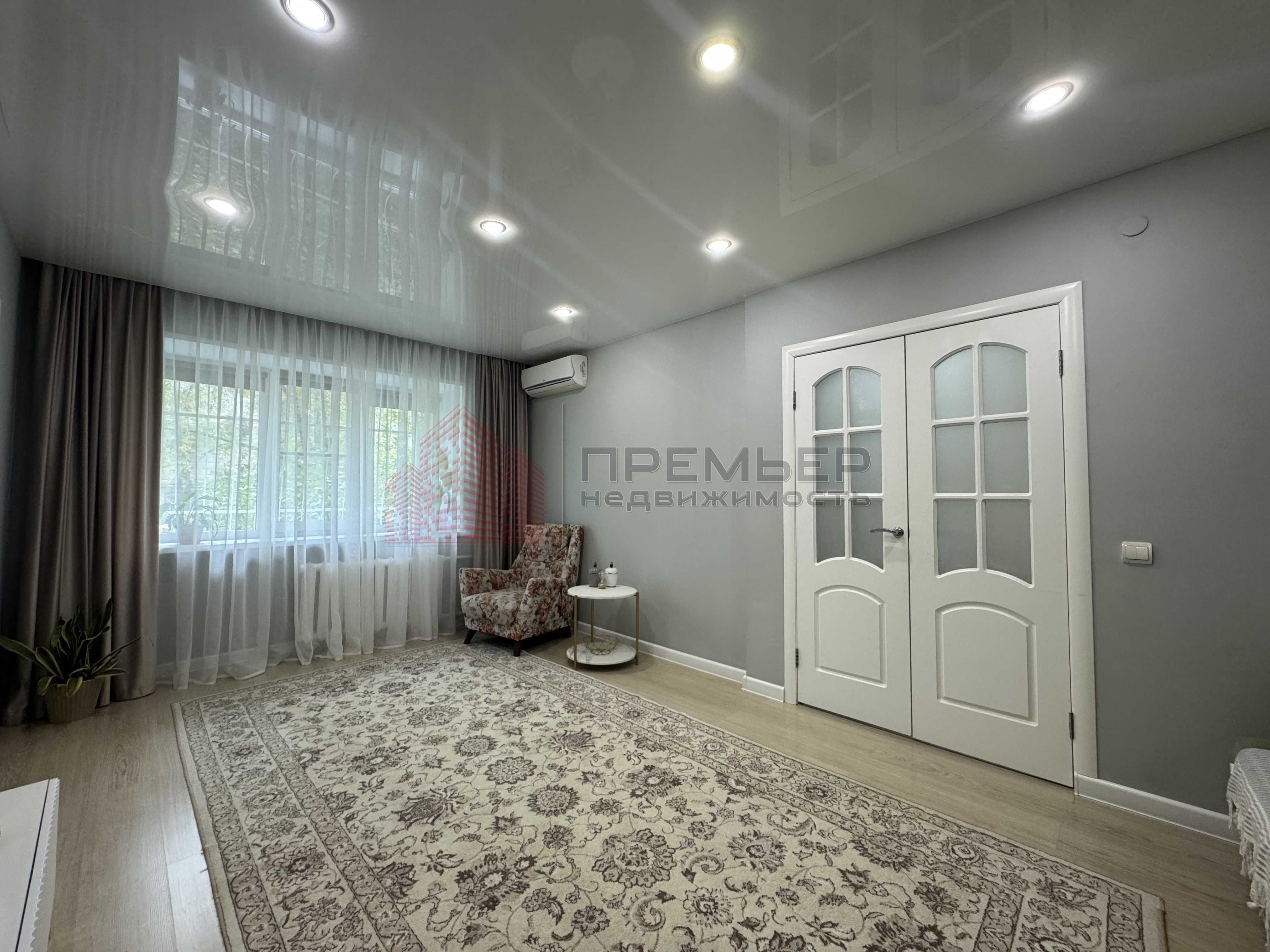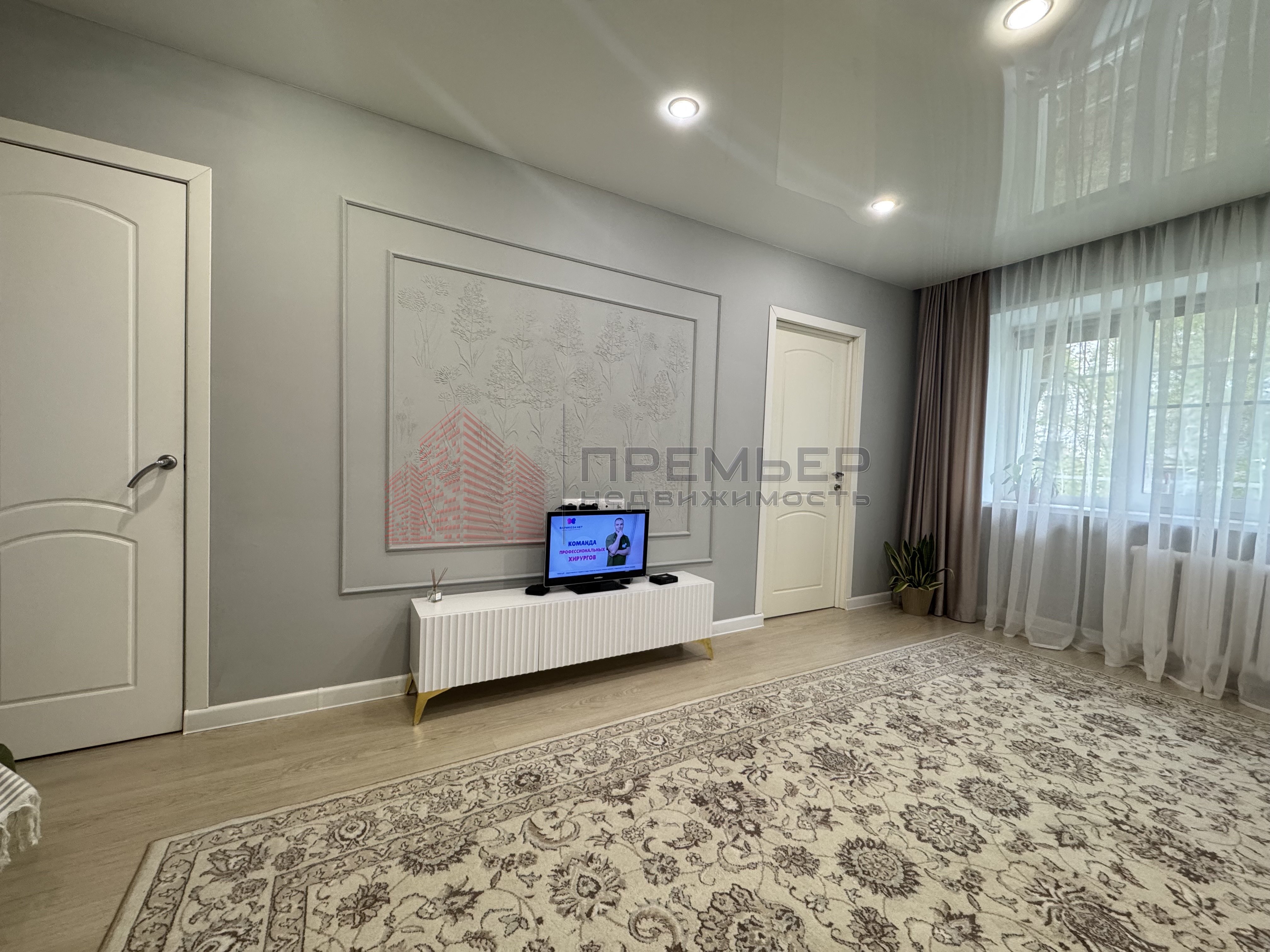 · Уютная гостиная: Просторная комната для отдыха и приёма гостей. Здесь вас ждёт мягкий диван, стильный ковёр, кондиционер и изящная декоративная лепка, которая станет изюминкой интерьера. Глянцевый натяжной потолок добавляет света и простора.