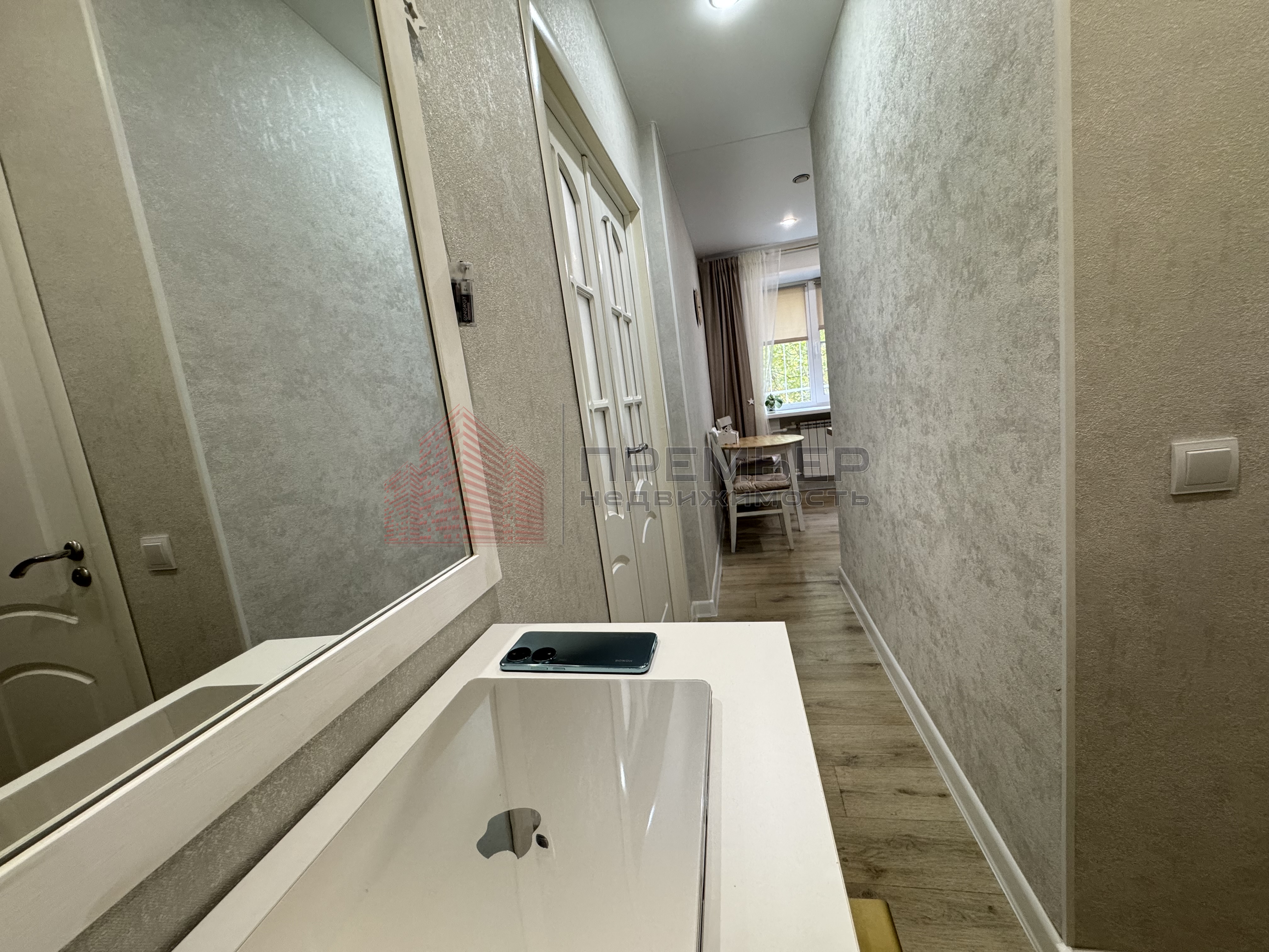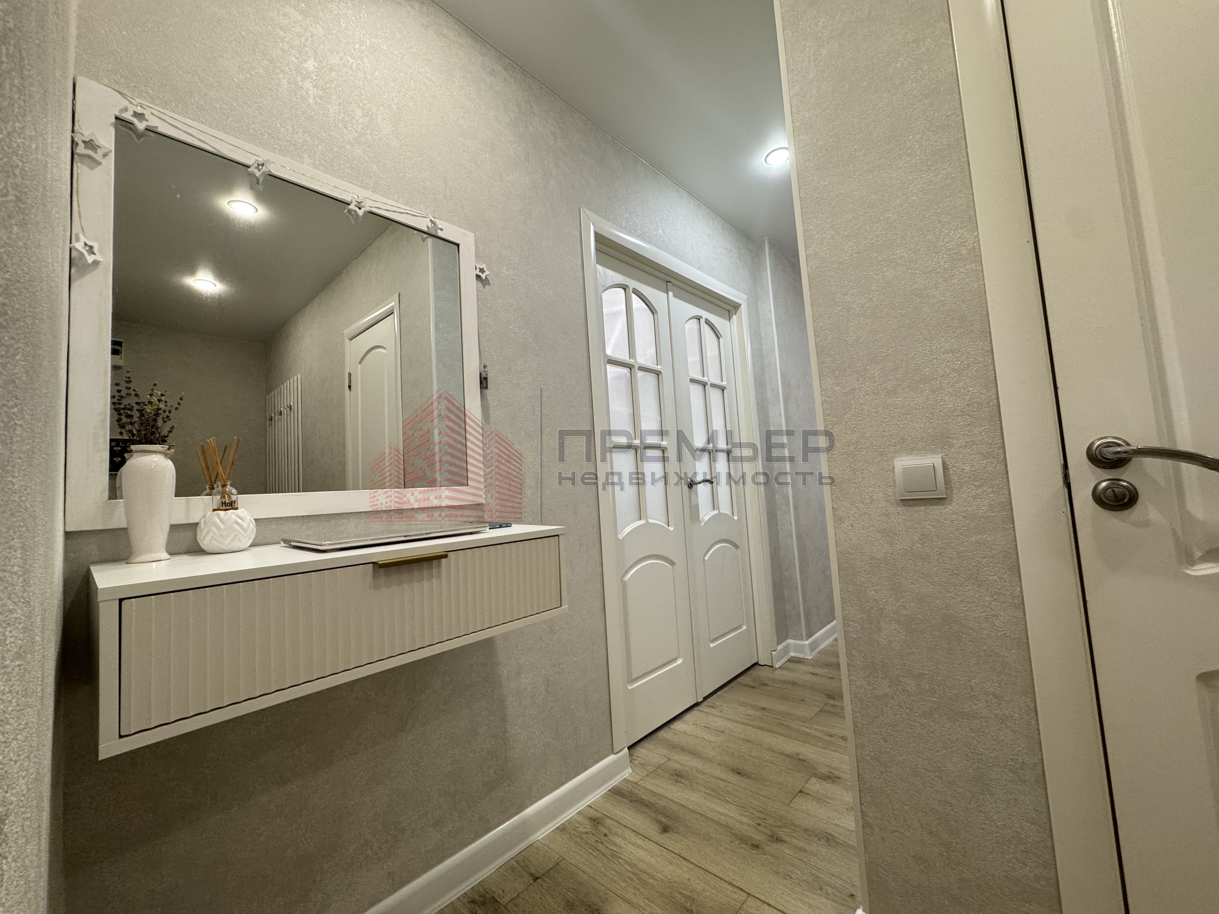 · Прихожая: Вас встречает светлый коридор с функциональной подвесной полкой, большим зеркалом и удобными вешалками. Продумано до мелочей!