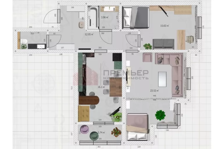 Благодаря этому квартира ощущается как *полноценная 3-комнатная*.