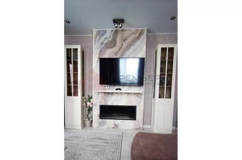 В гостиной установлен *биокамин*, который создаёт атмосферу уюта и теплоты.