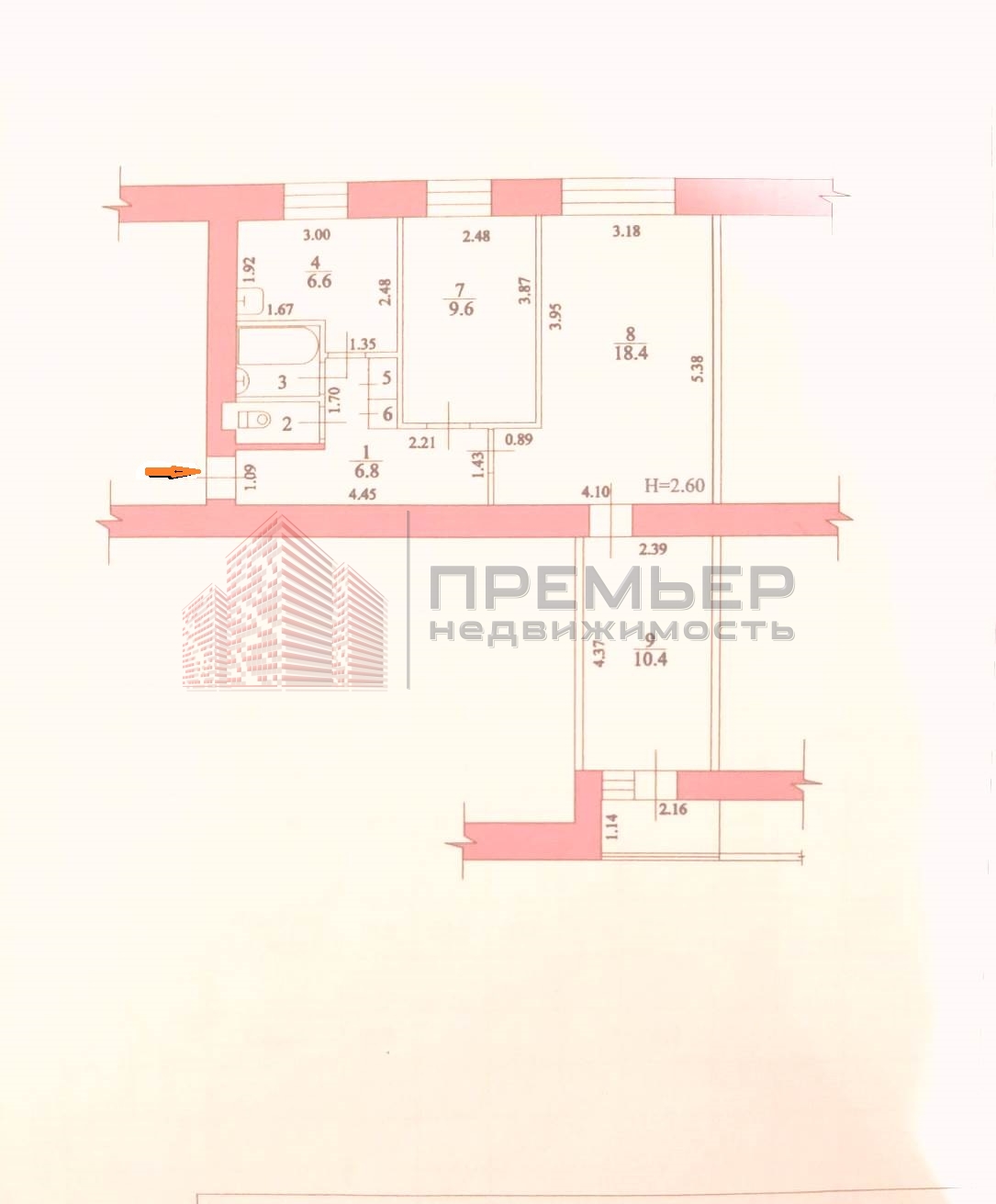 жилая -38,4. кв( 18,4+9,6+10,4)