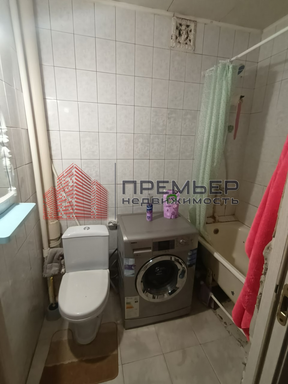 Санузел совмещенный, облицован кафелем.